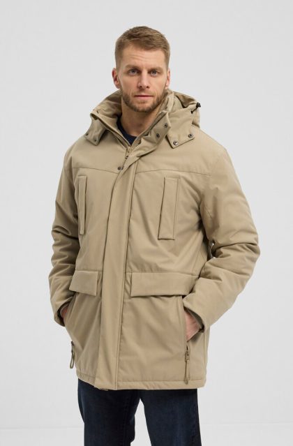 cztery kieszenie zewnętrzne zapinane na suwaki, dwie wewnętrzne kieszenie zapinane na suwak, rękawy z możliwością zmniejszenia dzięki rzepom, możliwość regulacji na dole kurtki, odpinany kaptur z możliwością zmniejszenia obwody dzięki wewnętrznemu ściągaczowi, odpinany